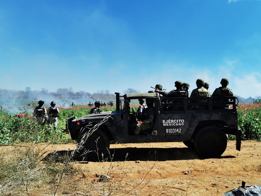 Fue así que elementos del Ejército Mexicano y la GN se desplegaron en dichas localidades para realizar reconocimientos terrestres y detectar uno de estos plantíos, que se confunden entre las milpas de maíz ubicadas en la zona. Al detectar la presencia de sujetos a bordo de una motocicleta -según reportes de Milenio-, se llevó a cabo una planeación operativa que finalmente culminó en el aseguramiento de las más de 800 mil plantas de amapola.